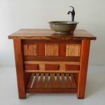 This vanity is made of solid ambrosia maple, cherry and black walnut. It features one drawer with dovetail joints and full extension gliders, a bottom shelf and adjustable leg levelers. More Info »